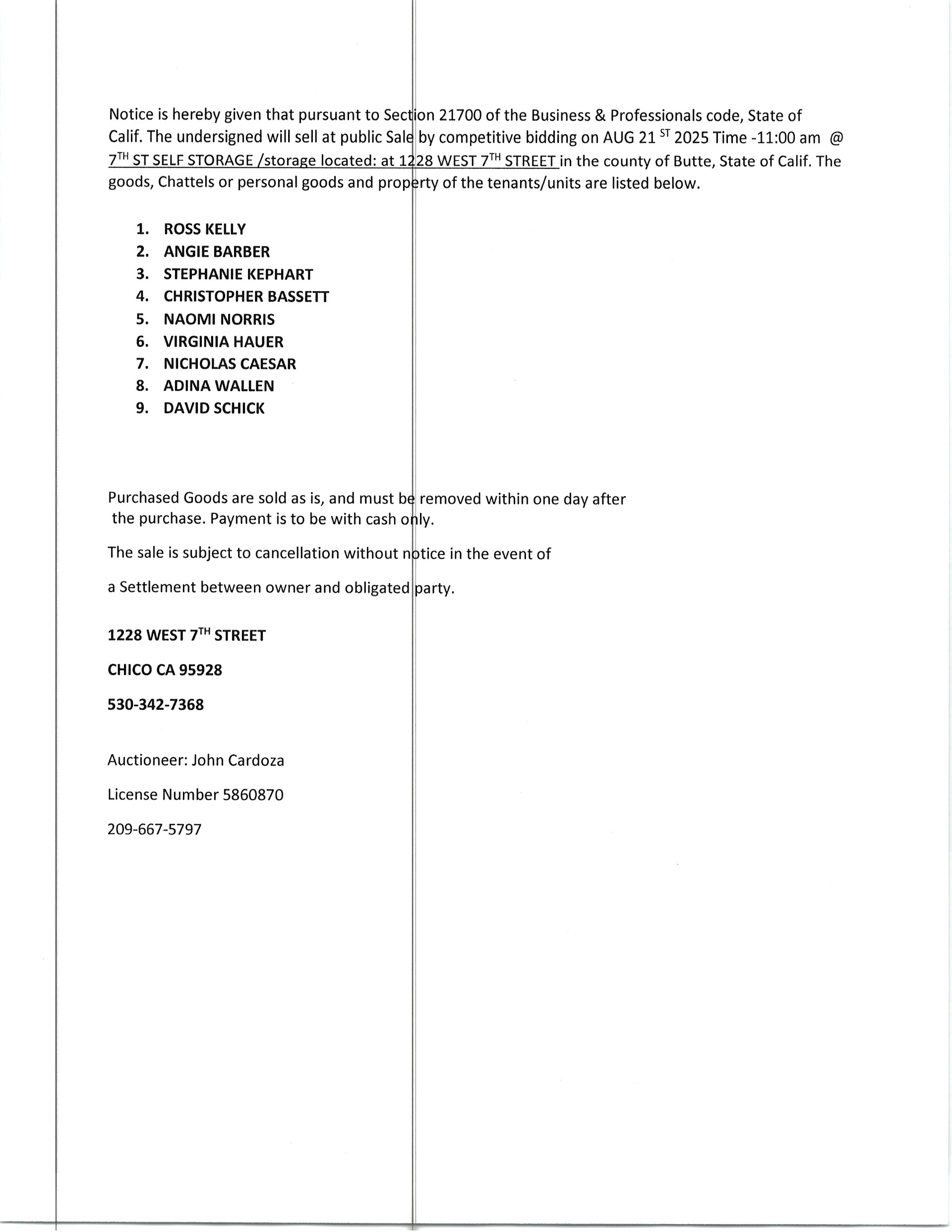 7th Street Storage 8/21/25 Auction Ad Ad posted on 8/6/25 Download Filename: 7th-Street-Self-Storage-8-21-25-Auction-Ad.jpg